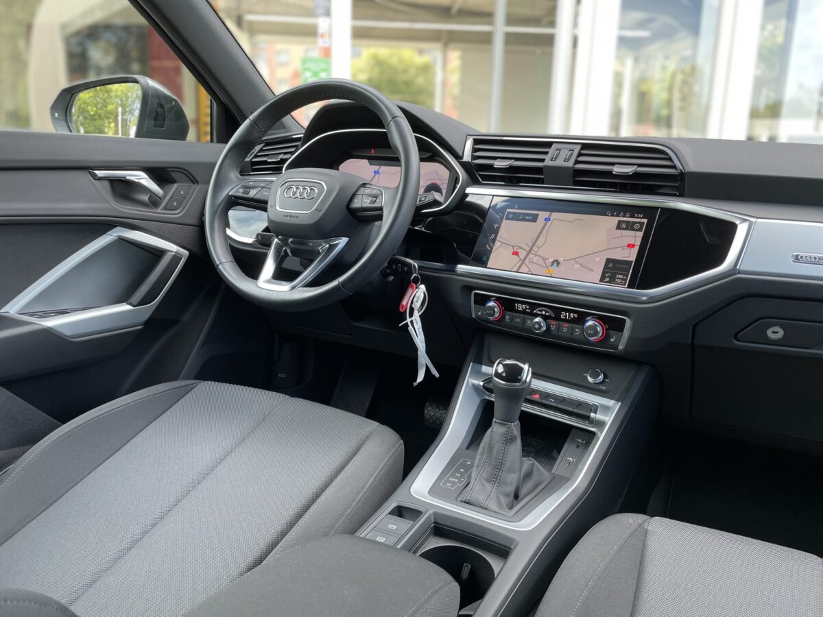 - Intérieur et Technologie : L’intérieur du Q3 Sportback est spacieux et bien fini, avec un tableau de bord orienté vers le conducteur. Il dispose d’un système d’infodivertissement avec un grand écran tactile, compatible avec Apple CarPlay et Android Auto. Les matériaux utilisés sont de haute qualité, ajoutant au sentiment de luxe.