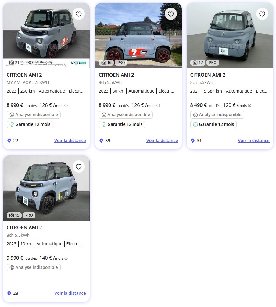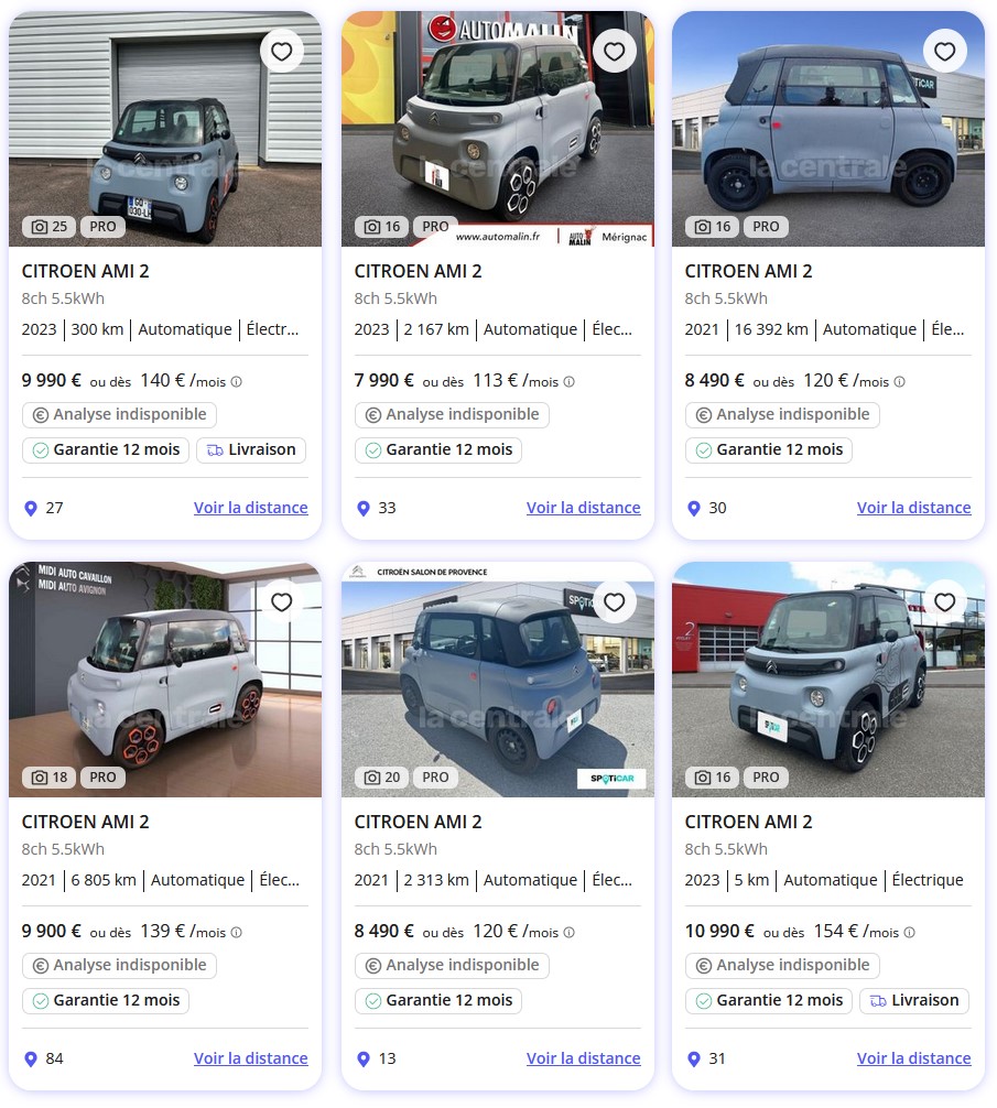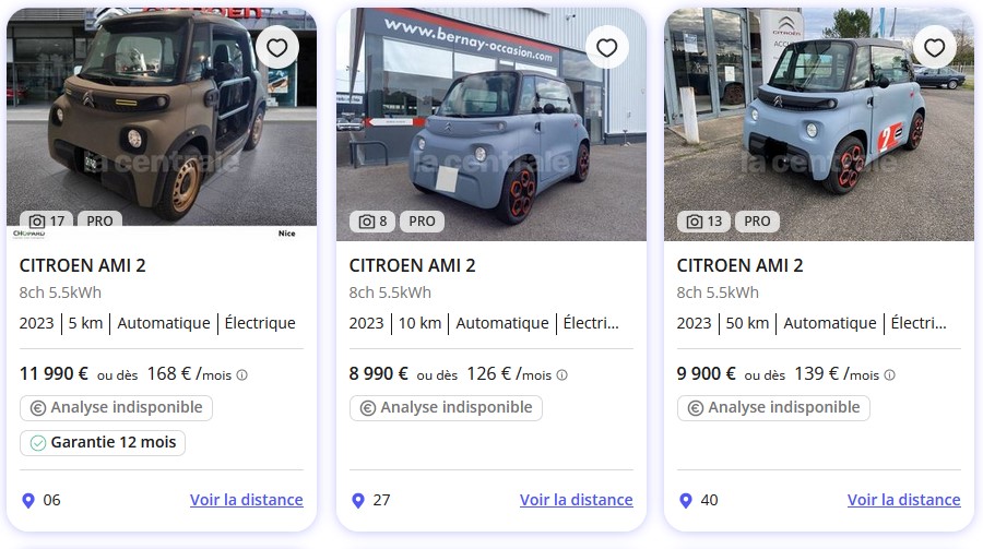 - Leasing et Location : Citroën offre également des options de leasing très compétitives pour l’Ami. Par exemple, il est possible de louer l’Ami pour environ 20 euros par mois après un premier paiement initial. Ce type d’offre est particulièrement attractif pour ceux qui cherchent une solution de mobilité urbaine sans l’engagement d’un achat complet.