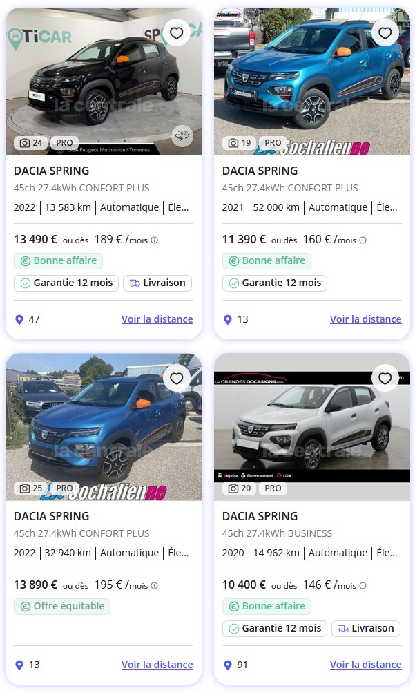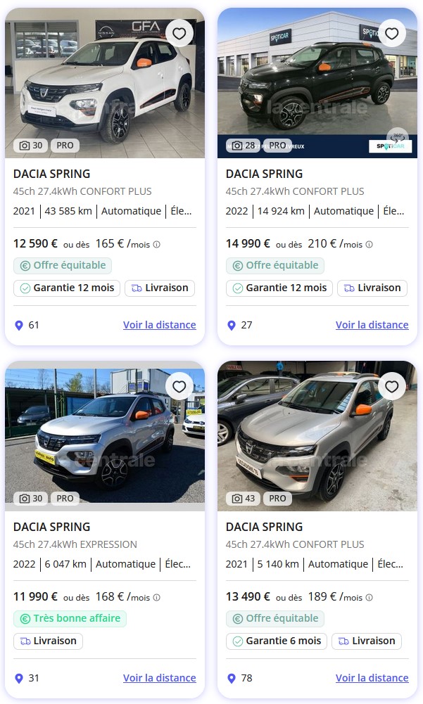 Dacia Spring électrique : Prix en occasion