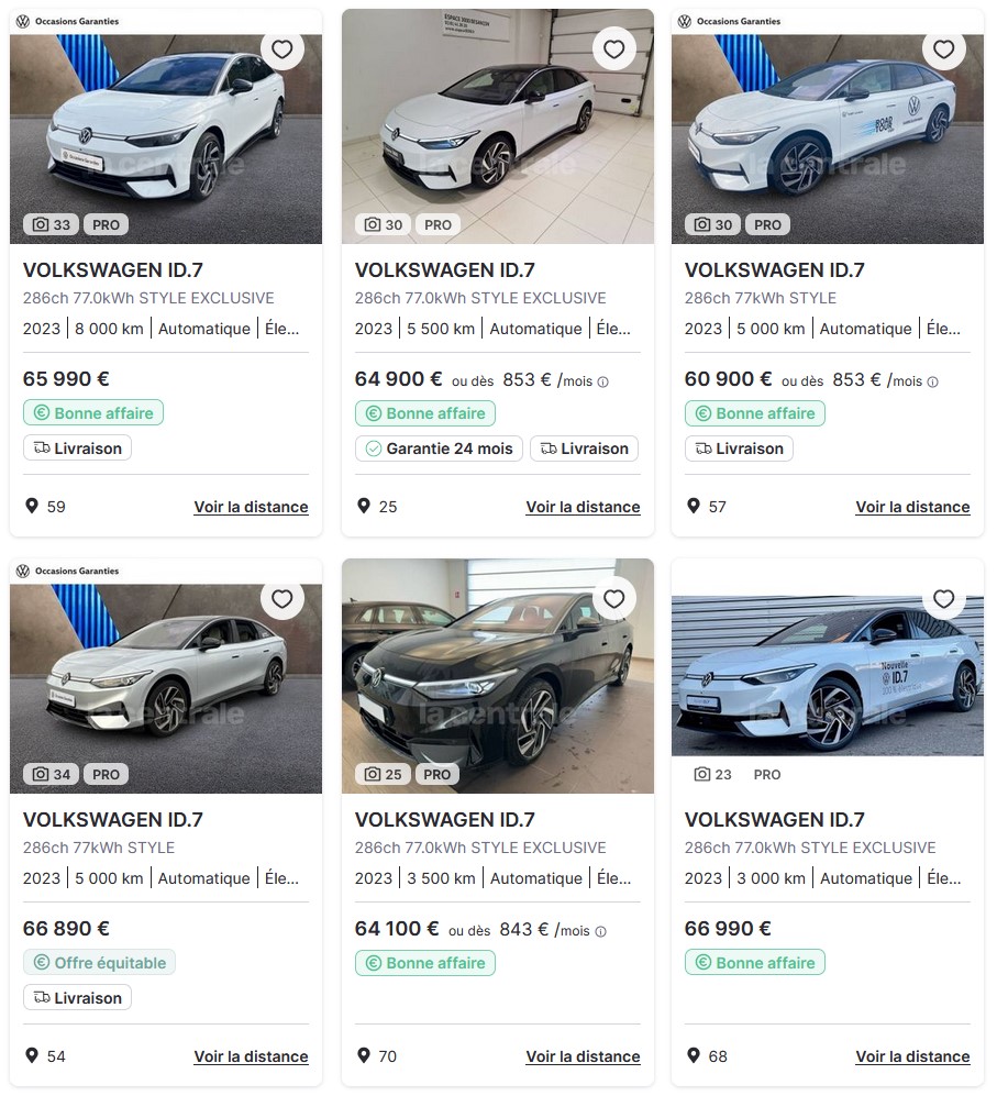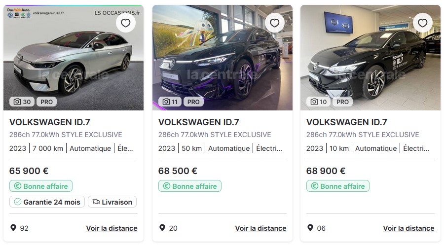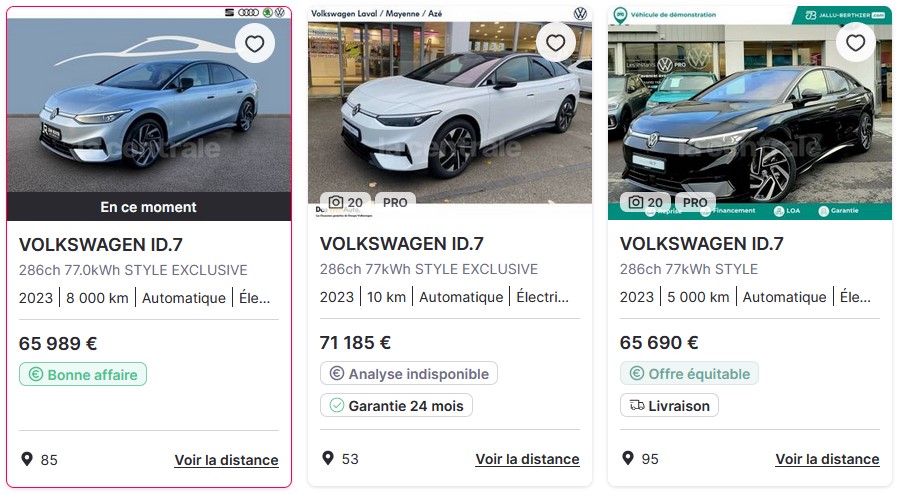 Tendances actuelles des prix pour la Volkswagen ID.7 Style Exclusive 2024