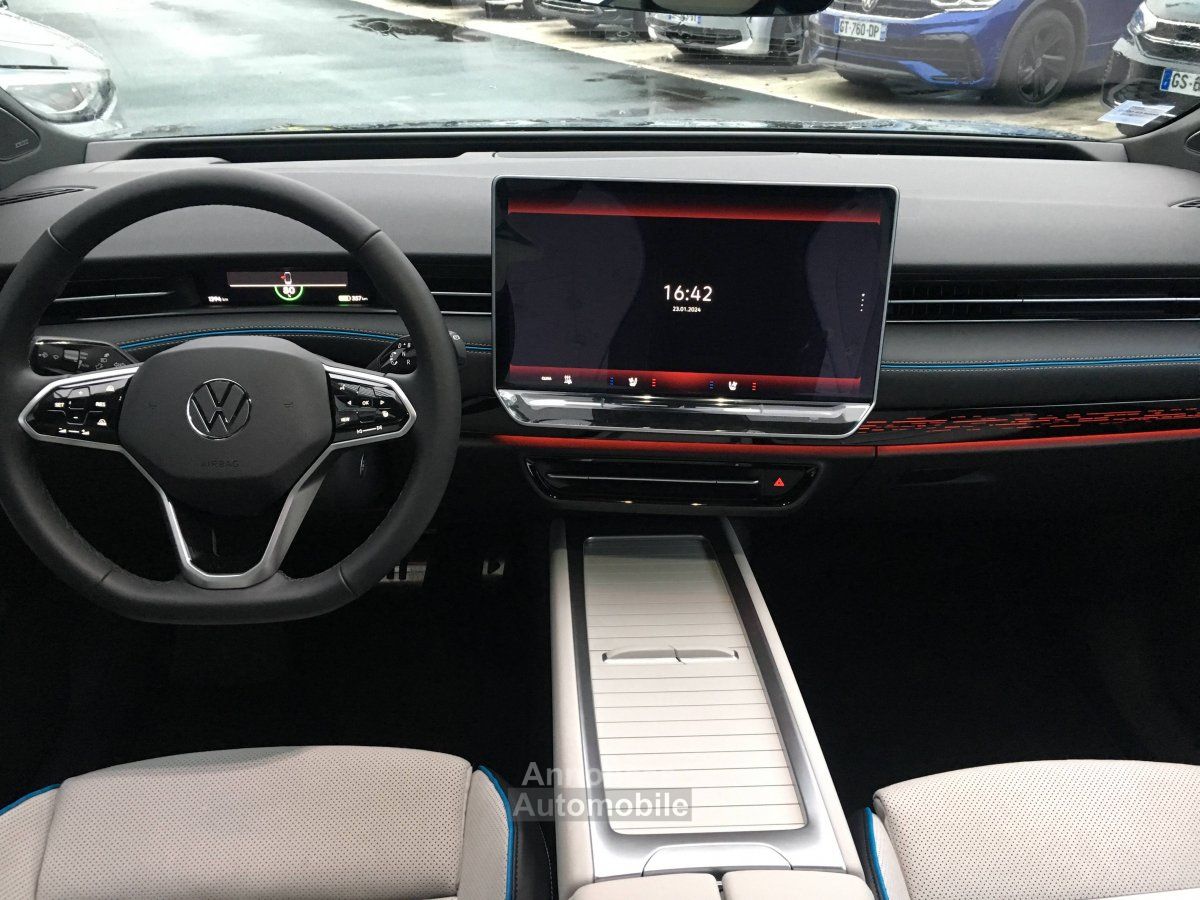 - L’intérieur de la ID.7 Style Exclusive est axé sur le confort et la technologie avec des matériaux de haute qualité et des finitions soignées. Elle est équipée de multiples fonctionnalités technologiques, incluant un grand écran central pour le système d’infodivertissement, la connectivité avancée, et diverses aides à la conduite qui peuvent inclure des systèmes de conduite semi-autonome.